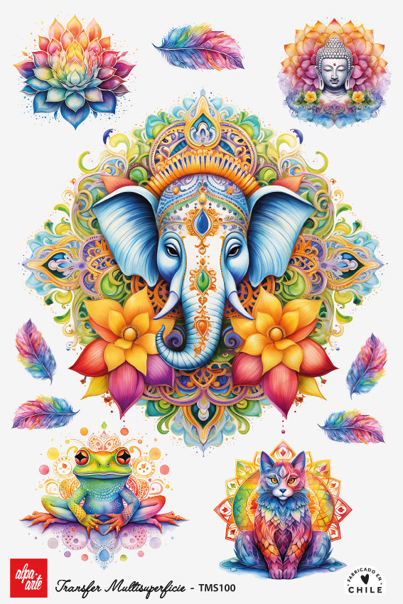 Maravillosa lámina transfer colorida de 20x30 centímetros, para aplicación en diversas superficies. Se adhieren aplicando la plancha de uso doméstico.